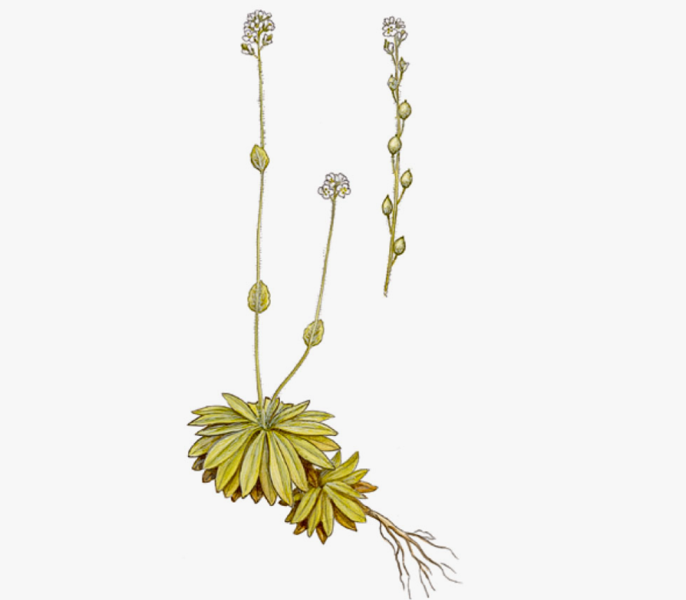 Крупка байкальская (Draba baicalensis) – невысокое травянистое растение из семейства крестоцветных с тонкими стеблями, небольшой прикорневой розеткой листьев и мелкими белыми цветками. На первый взгляд она выглядит как «просто травка на камнях», и именно поэтому её так легко не заметить.